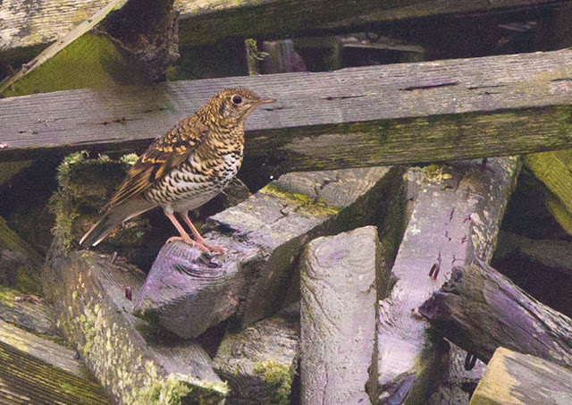 The fog unfortunately stopped play with the whales but then a White's Thrush broke down at Quendale. Having seen the Spurn bird ages ago, I was quite chilled about it. Glad we went though- within ten seconds of leaving the car the bird nearly took our heads off as it flew at and around the crowd. It then gave decent views on a wall and then even better and pre-longed views on a woodpile. Very unlike White's Thrush! Eventually it flew round a barn never to be seen again! Elsewhere, there have been two others found on the Northern Isles today. A sign of more beasts from the east to come we hope!