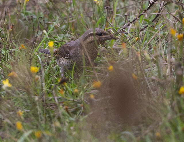 Still mostly invisible but still a great, characterful bird. Spent an enjoyable hour with the Wryneck at Ferry Meadows again this evening, after work, with Hugh Wright. It had been missing for three hours prior our arrival so we were lucky to get the few views we got of this very special bird.